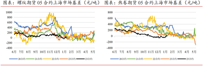 2、期货2405合约基差方面,上海市场螺纹、热卷基差有所走强,上海市场螺纹现货基差为+28元/吨,走强27元/吨,热卷现货基差为+4元/吨,走强23元/吨。