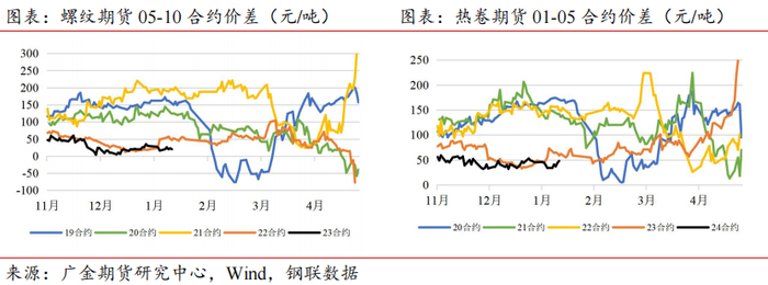 3、期货月差本周小幅走强,螺纹期货05-10合约月差20(+4),热卷期货05-10合约月差48(+14)。