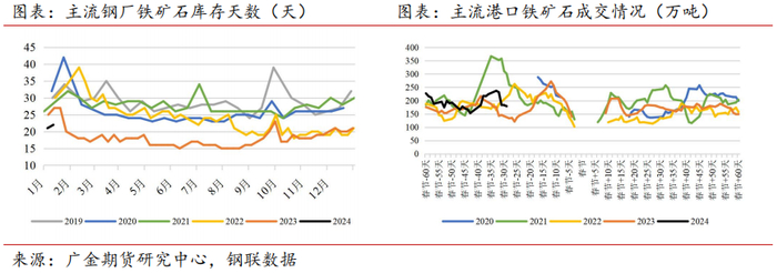 库存方面,国内存货水平整体仍然偏低,但环比有所回升,45座港口进口铁矿库存12621.11万吨,环比+3.07%,同比-5.52%;铁矿压港天数47天,较上周+13天;114家钢厂进口铁矿平均可用天数23.84天,较上周+1.78天。