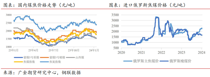 由于主产煤国之一的俄罗斯因俄乌冲突持续影响导致其通胀高企及财政不稳定性增加,因此今年俄罗斯或仍将继续加大对中国的煤炭出口量,在原煤需求季节性变动的影响下,2024年一季度煤焦现货供应将宽松,或导致成品钢材生产成本支撑继续下行。