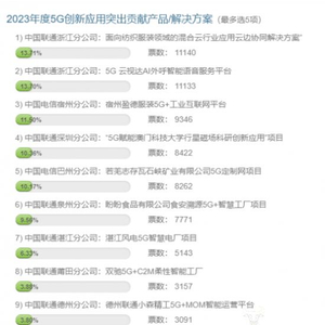 5G创新应用突出贡献产品评选:浙江联通宿州电信深圳联通暂居前