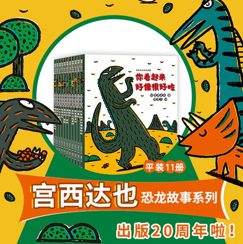 宫西达也的恐龙故事,20周年纪念套装。这套绘本描述了恐龙世界关于强者与弱者、亲情和友情的一系列温馨动人的故事。整套绘本的画面颜色鲜明、亮丽,作者用力度感极强的粗线条勾勒出一个生动的恐龙世界。