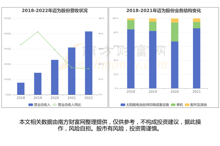 迈为股份创始于2010年9月8日,2018年11月9日在深圳证券交易所上市,股票代码300751。公司主营业务为主要从事智能制造装备的设计、研发、生产与销售。