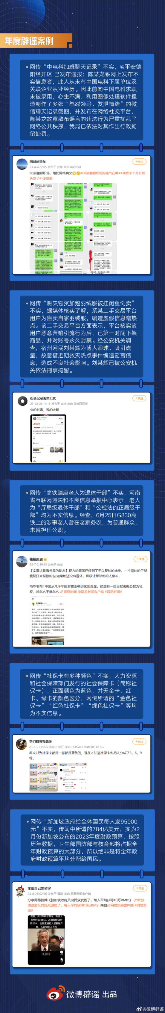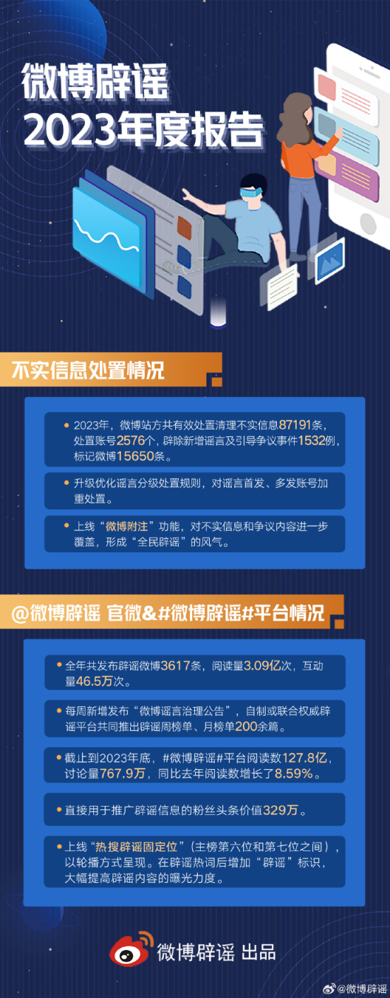 1月17日,@微博辟谣 发布2023年度微博辟谣报告: