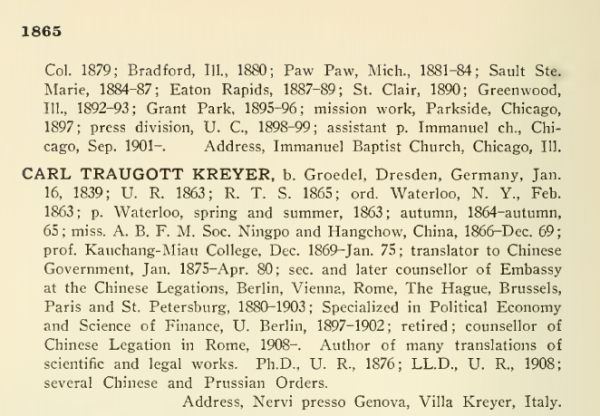 高田时雄文中说明,金楷理所毕业的罗切斯特大学是一所神学院,并引用了罗切斯特大学毕业生名录,来说明金楷理后半生的履历。但他似乎没有注意到,金楷理是1863年的毕业生,至少到1910年,他似乎一直与母校保持着联系,报告他的任职变动情况。