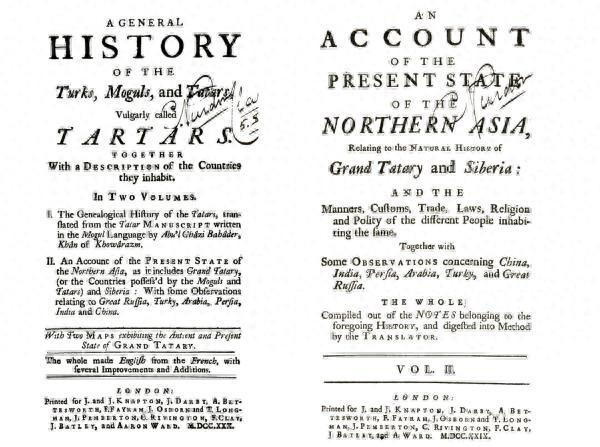 阿卜而嘎锡(Abul Ghazi Bahader Khan)的《突厥、蒙兀儿和鞑靼通史》(A General History of The Turks, Moguls, and Tatars),1730年伦敦出版的英文译本,分两卷。该书即中文译本《突厥世系》,实际上是蒙古史。来源:作者提供