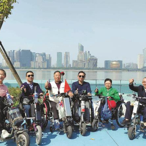 残疾人团队在杭州游览钱塘江滨江大道