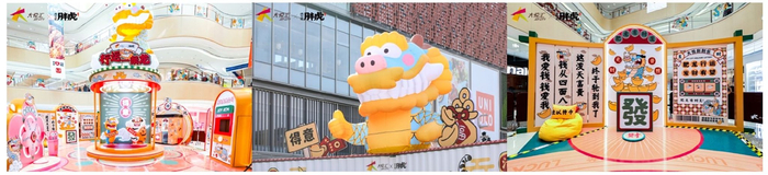 在首都北京,北京西单大悦城携手国潮波普艺术家魏一番先生,打造的国潮新年装置艺术展「仙龙大悦」波普艺术全国首展,以轻松顽趣、乐观向上的国潮龙IP「仙龙掌」为主形象,呈现一个最有趣的龙图腾形象;1月27日还将有「猫福珊迪装可爱Q萌粒粒公仔快闪店」北京首站登陆,快闪店以冰淇淋配色为主题,将带来20余款迷你鲨鱼猫粒粒以及丰富周边,解锁清新可爱系新春佳节,活动将持续至2月25日。北京丰台大悦春风里温情打造的冬日当红绮想·「锦耀龙门」花灯展,20米长巨龙花灯璀璨闪耀,将为大家带来沉浸式花灯观赏氛围感,同样将持续至2月25日元宵节后。