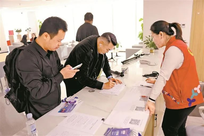 1月16日下午,前往东门商圈党群服务中心的主播络绎不绝,自“东门步行街直播报备平台”正式运行后,当天到现场预约报备的就有30多位主播,而线上登记的有40多位。有主播表示,填写个人信息和直播内容后,就可以选择直播区域和时段,操作流程非常简单,不到一分钟就能完成。
