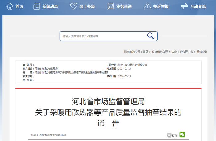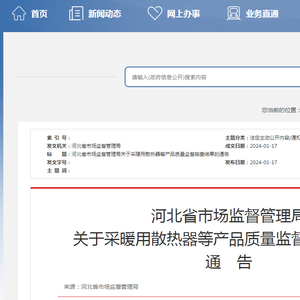 河北省市场监督管理局关于采暖用散热器等产品质量监督抽查结果的通告