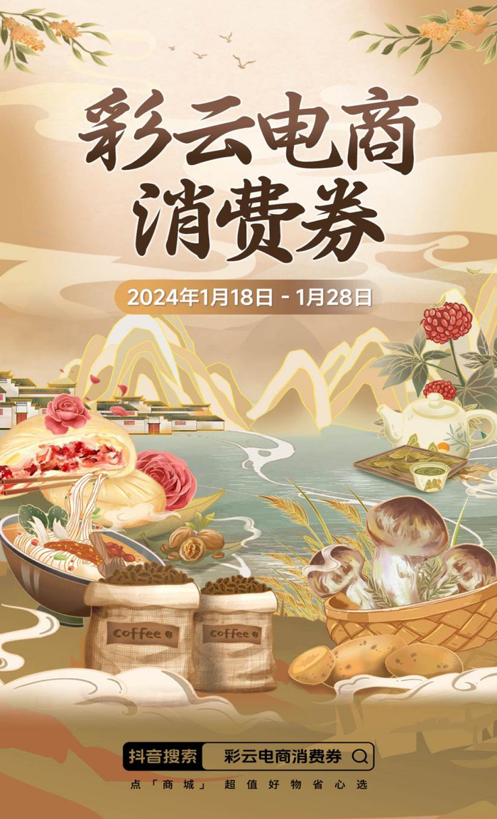 “彩云电商消费券”以“政府补贴+平台助力+商家让利”模式,整合云品资源,更精准地通过抖音商城、短视频、直播间触达线上消费人群,培育发展新消费场景,打造“线上+线下”双线驱动的年货消费氛围,让全国消费者随时随地线上畅购云品,让云品丰富年味!