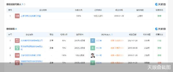 3家存续状态的公司涉及文化艺术业和商务服务业两大领域,其中,王一博任上海弋博文化传媒工作室法人,不过,3家公司王一博均为受益所有人、实际控制人、控股股东。