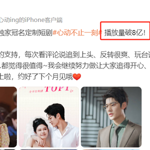 这些短剧虽然看名字俗不可耐,但却吸引了大量观众,多个短剧播放量破亿,其中,《心动不止一刻》播放量更是突破 8 亿,成为了全网短剧 TOP1。