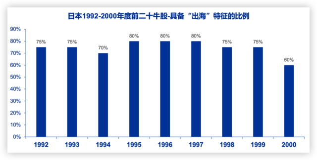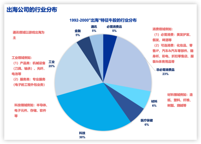 我们统计1992-2000每一年前20牛股中有“出海”特征的企业,1992-1999这一比例均超过70%,2000年为60%(2000年主要受到地产回暖影响)。