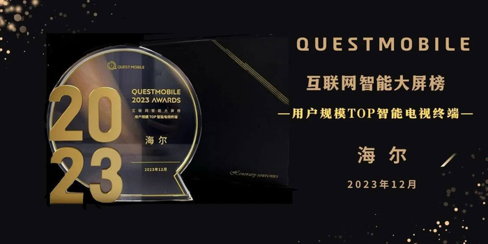 2023年12月22日,国内知名商业智能数据服务商QuestMobile2023年度趋势发布会在北京召开。峰会现场,主办方不仅邀请数百位行业大咖,全面剖析了中国移动互联网的发展前景,还发布了“2023年度中国移动互联网实力价值榜”。其中,海尔电视凭借影院级音画体验和“一屏控全家”的智慧场景,获得了互联网智能大屏TOP大奖,为用户持续创造高品质的智慧生活新体验。