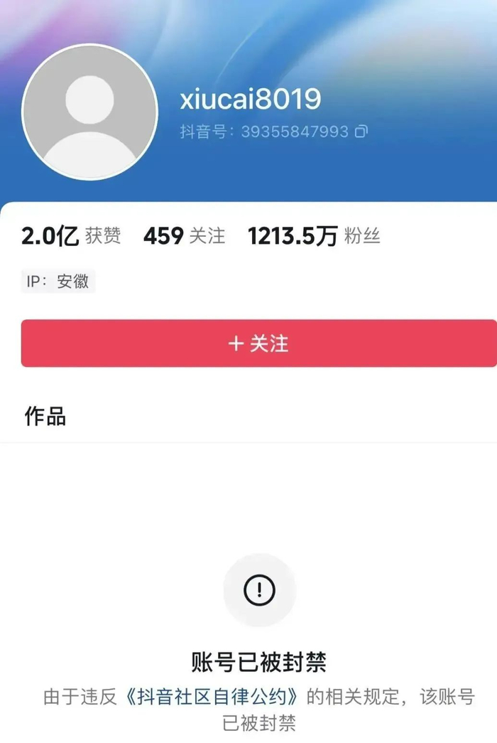 2023年9月初, “秀才”账号就被封禁。短视频平台的页面显示,“秀才”账号违反了“社区自律公约”的相关规定,已封禁。