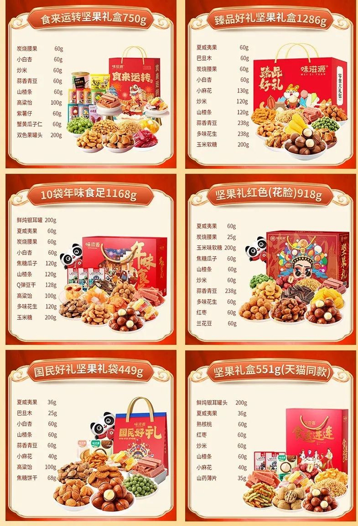 味滋源只做性价比高的产品,这次商城精心挑选了他家6款新年坚果礼盒,不同的包装和搭配,款款都喜欢~根据个人的需求选择,囤着自己吃、走亲送礼都nice