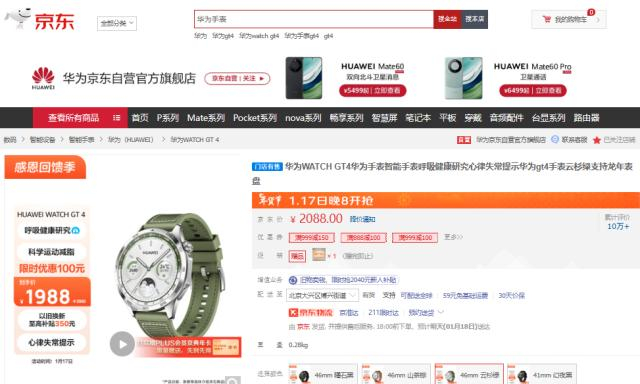 想在新的一年更好地关注父母或者自己的身体情况,实时了解身体的健康数据,可以选择华为WATCH GT4。其配置全新活力三环2.0,支持制定运动目标,活动小时数、锻炼时长、活动热量一目了然,同时搭载减脂塑形应用,并融合智能监测技术,精准计算卡路里消耗。华为WATCH GT4还可监测心率,在异常时发出提醒,可提供精准的轨迹记录,带来更精准的心率、血氧、睡眠、压力等体征监测,为身体健康提供实时监测。华为WATCH GT4 46毫米云杉绿版17日晚8点京东价1988元,可享以旧换新至高补贴350元。