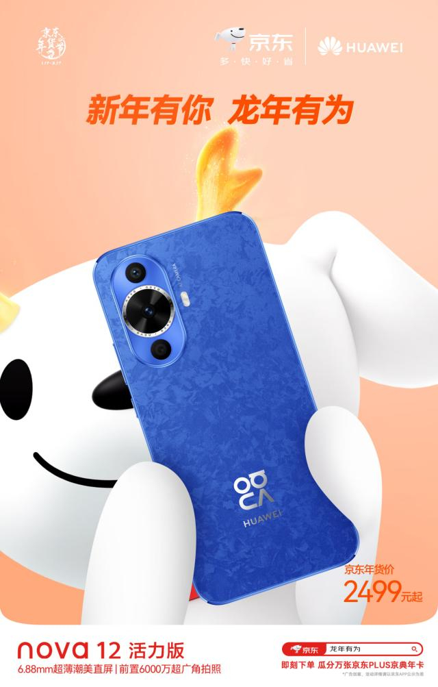 在新年为家人换新一部性能均衡、拍摄优异的手机,可以选择华为nova 12 活力版。华为nova 12 活力版带来鸿蒙智慧通信,信号更稳定,搭载HarmonyOS 4,支持超级中转站、实况窗,更好用。影像上,华为nova 12 活力版前置6000万超广角人像镜头,后置5000万超感知影像系统,拍摄更轻松。华为nova 12 活力版搭载4500mAh高能效电池,支持66W超级快充Turbo 2.0,续航无忧。华为nova 12 活力版京东价2499元起。