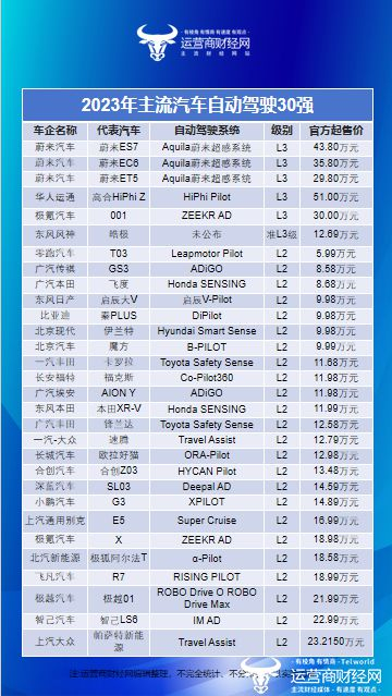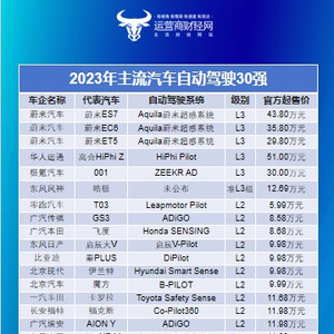 “2023年主流汽车自动驾驶30强” 谁更领先?