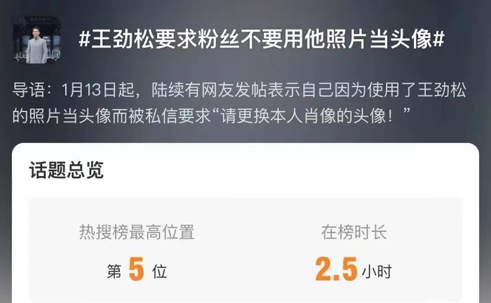 1月17日,#王劲松要求粉丝不要用他的照片当头像#的词条冲上热搜。