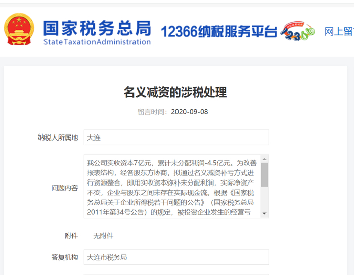 国家税务总局大连市税务局12366纳税服务中心答复: