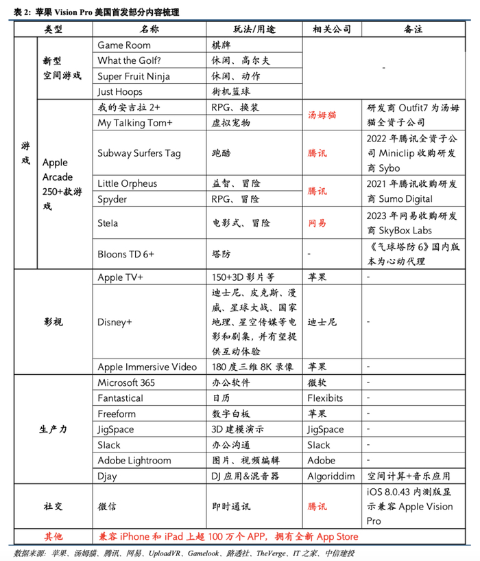 苹果Vision Pro将在1月19日预购,2月2日正式在北美发售。我们梳理有机会首发的内容以及相关公司。