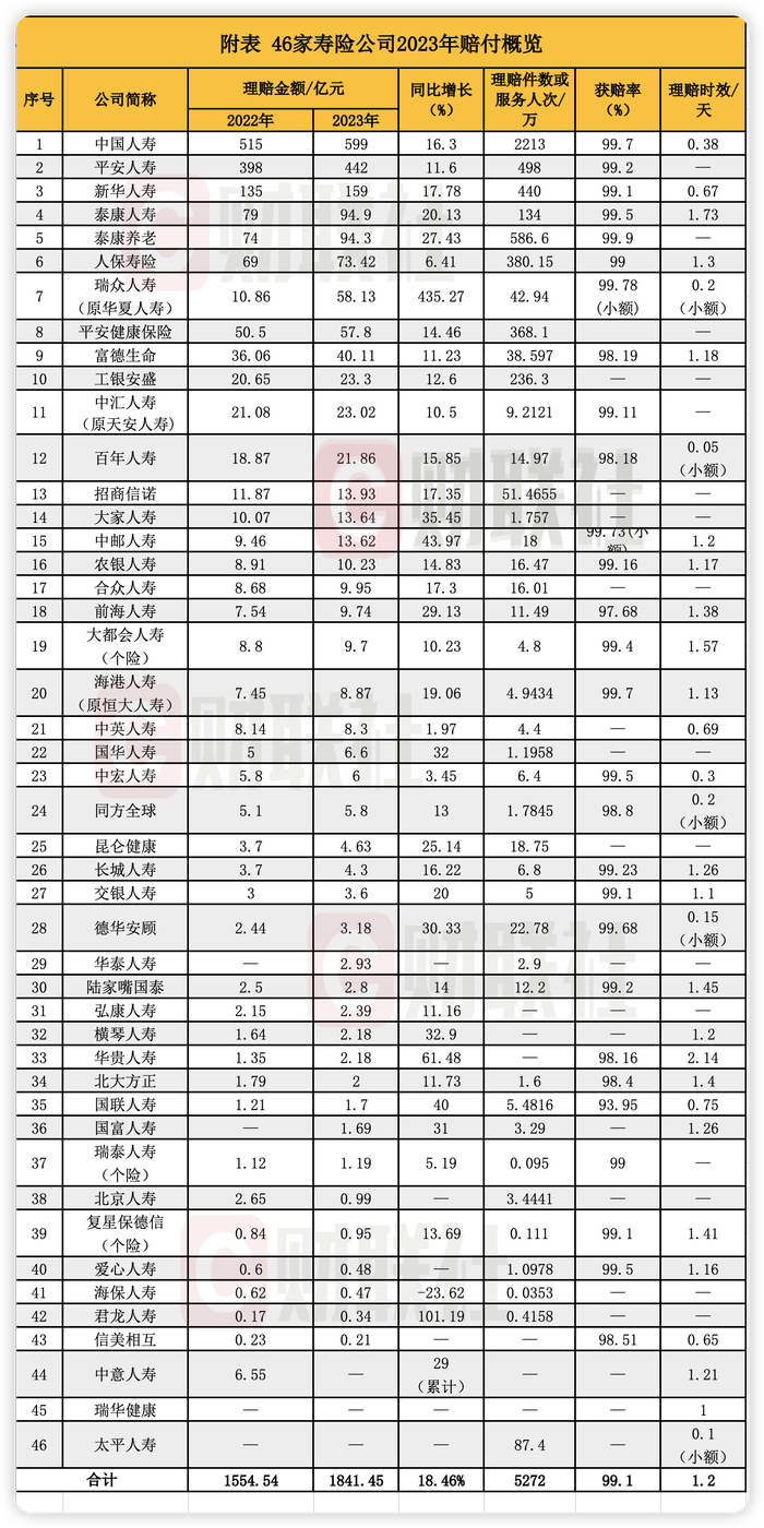新年伊始,46家人身险公司交出2023年度理赔服务报告。