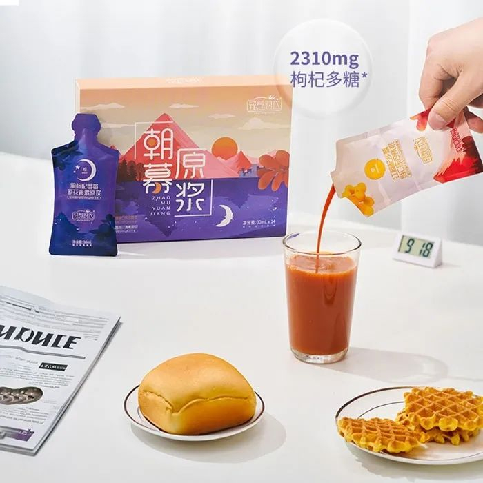保温杯里泡枸杞不能满足上班族,是时候来一袋枸杞原浆,感受“佛系养生”的快乐,鲜榨枸杞原浆,浓郁的果味,还富含多种营养成分,方便携带,更易吸收!