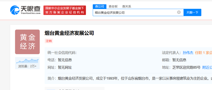 据查阅后发现,烟台黄金经济发展公司如今已处于注销的状态。而在注销前,该公司的法定代表人为“孙伟杰”。
