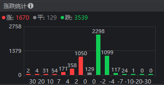 昨天收盘,下跌个股超过5000家创了新高,今天则降至3500多家。