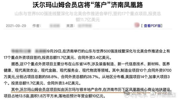 记者通过梳理发现,山姆济南首店始传于三年前,在2021年2月24日召开的济南市的政府新闻发布会上,相关负责人便表示,瞄准沃尔玛山姆会员店、Costco等高端商贸项目加大招引力度。