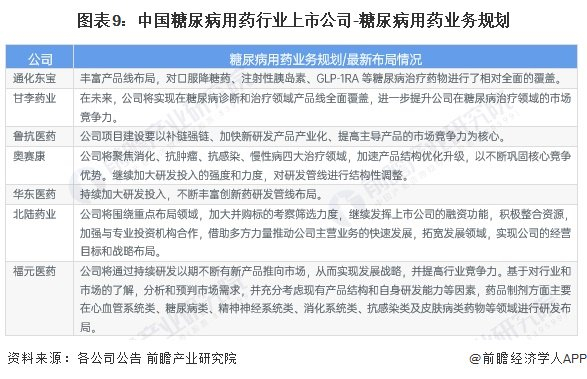 5、糖尿病用药行业上市公司糖尿病用药业务规划对比