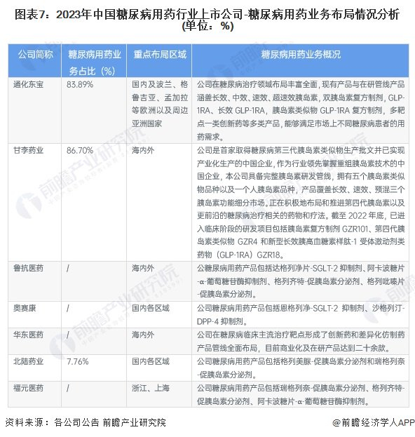 3、糖尿病用药行业上市公司业务布局对比