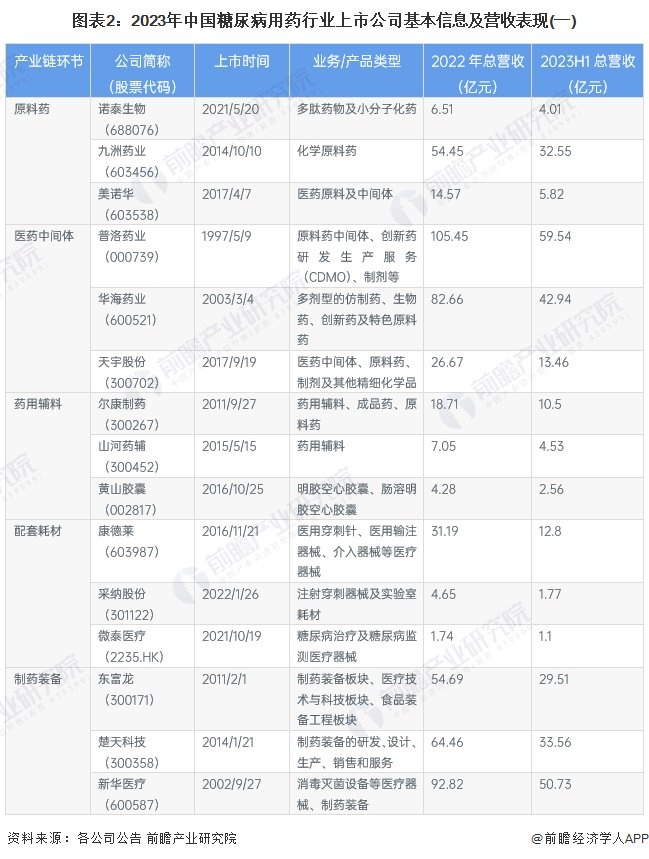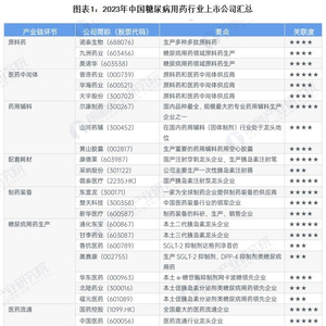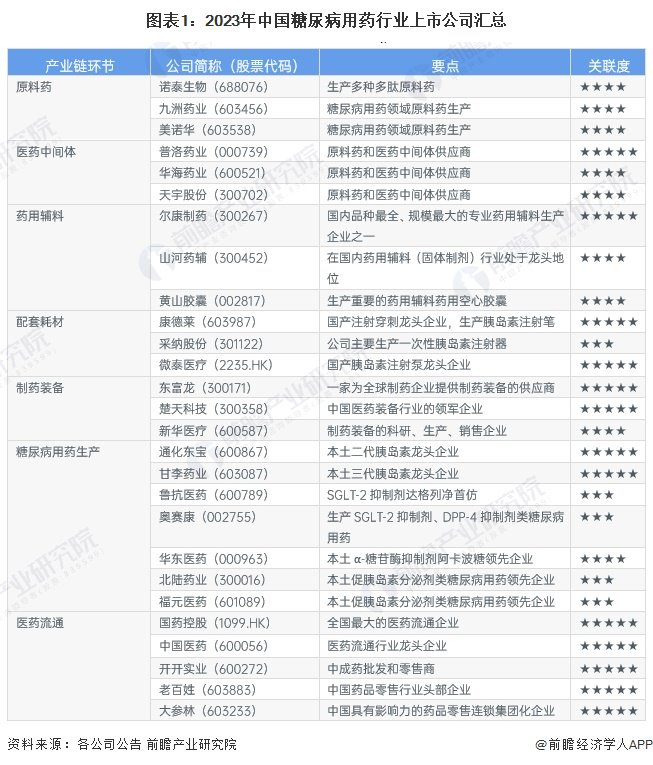 1、糖尿病用药行业上市公司汇总