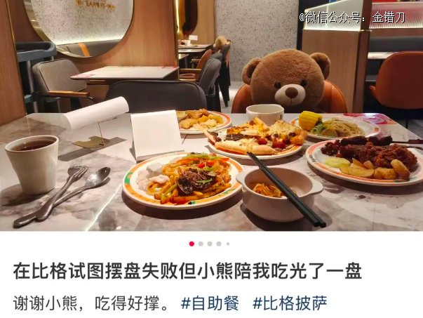 有网友分享,“我自己去的时候,拿菜回来发现对面椅子上多了一个小熊。比格就是比萨界的海底捞。”