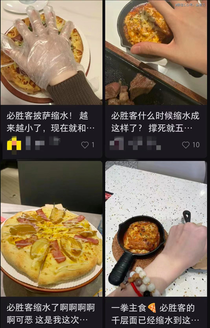 而在必胜客,不仅没有这些细节,在网上查一下,就会发现很多人吐槽用料“缩水”,甚至还有人称自己吃到生的。