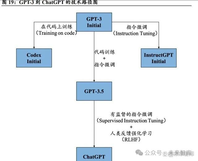 代码训练、指令微调、RLHF 等调整对模型做了什么,产生了不同的“涌现”能力? 在文章《How does GPT Obtain its Ability? Tracing Emergent Abilities of Language Models to their Sources》中,作者仔细检查了 GPT-3.5 系列的能力范围,并追溯了 它们所有突现能力的来源。初代 GPT-3模型通过预训练获得生成能力、世界知识和 上下文学习能力。然后通过指令微调的模型分支获得了遵循指令和能泛化到没有 见过的任务的能力。经过代码训练的分支模型则获得了代码理解的能力,作为代 码训练的副产品,模型同时潜在地获得了复杂推理的能力。结合这两个分支, “code-davinci-002”似乎是具有所有强大能力的最强 GPT-3.5 模型。接下来通过有 监督的指令微调和 RLHF 通过牺牲模型能力换取与人类对齐,即对齐税。RLHF 使 模型能够生成更翔实和公正的答案,同时拒绝其知识范围之外的问题。