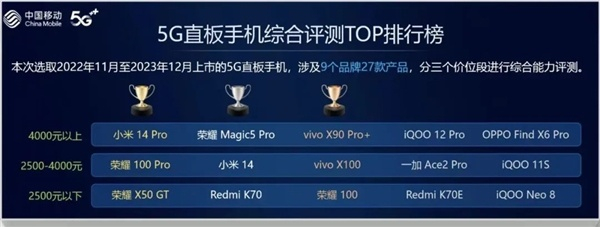 中国移动最新发布了2023年度综合手机评测排行榜