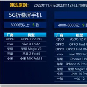 测评选取了“2022年11月至2023年12月”的32款热门机型,覆盖4个价位段,涵盖折叠屏和直板机两种形态。