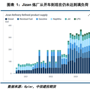 第一套是沙特阿美的Jizan炼厂,该炼厂产能为40万桶/日。Jizan炼厂2021年1月22日开始试运行,一直到2023年3月17日加工量才达到40万桶/日。从试车到全力运营用时26个月。