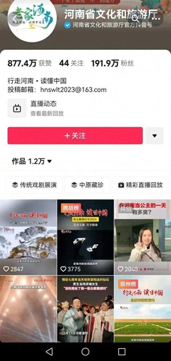 虽然也伴随着争议,但是河南省文化和旅游厅的官方账号连续四天发布了112条视频后,粉丝数从1月9日的15.56万涨至18日的210万。携程数据显示,1月8日至14日环比去年12月同期,河南搜索热度上涨约5成,山东、山西搜索热度上涨约4成,广西、吉林、河北搜索热度均上涨超2成。