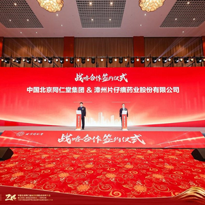 大会期间,片仔癀药业与北京同仁堂集团签署了合作协议。双方约定,强化优势互补,携手共建中医药高质量发展共同体。未来将探索共同拓展海外市场,讲好中医药故事;开展品牌共建,联合策划论坛、展会、学术交流活动;进行销售互助,利用各自优势推进全品类产品销售,选择部分核心北京同仁堂门店设立片仔癀专柜。