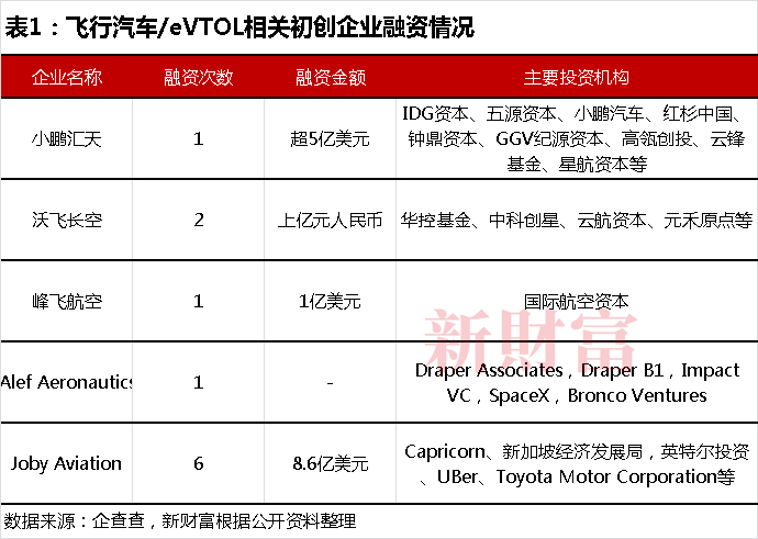 结合企查查数据,除已经上市的亿航智能外,初创企业中,包括沃飞长空、峰飞航空、Joby 等公司均已获得融资,出资机构包括华控基金、元禾原点、国际航空资本、新加坡经济发展局、英特尔投资、UBer、Toyota Motor Corporation等(表1)。