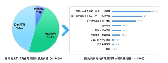 👉“生鲜不新鲜”“品相不佳”“货不对板”是消费者购买生鲜类商品时遇到的共性问题;