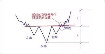 另外,当颈线阻力突破时,必须要有成交量激增的配合,否则这可能是一个错误的突破。不过,如果在突破后成交逐渐增加,型态也可确认。