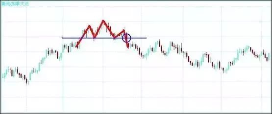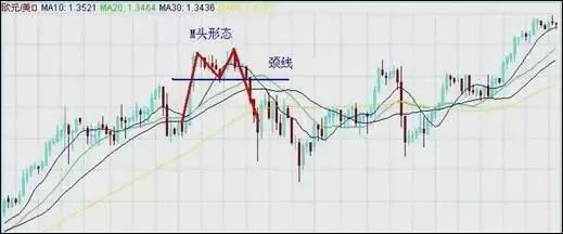 双峰反转形态并不一定意味着汇价的反转,也有可能在汇价回落到颈线的过程中受到支撑线的支撑而上涨。这时汇价在支撑线和前面两个高点之间的区域内运动,形成三重顶、三角形等多种形态,但这种可能性很小。