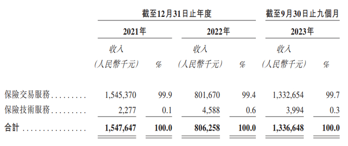 贝多财经发现,虽然手回科技的将业务类型分为保险交易和保险技术两大模块,但其营收仍高度依赖保险交易服务。报告期内,该项业务的收入占比稳定在99%以上,而保险技术服务的收入占比不足1%,收入来源较为单一。