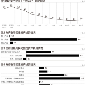 2023年固定资产投资全年增长3%。制造业投资、基建投资增速快于投资整体水平,房地产开发投资则成为主要拖累,下降9.6%。