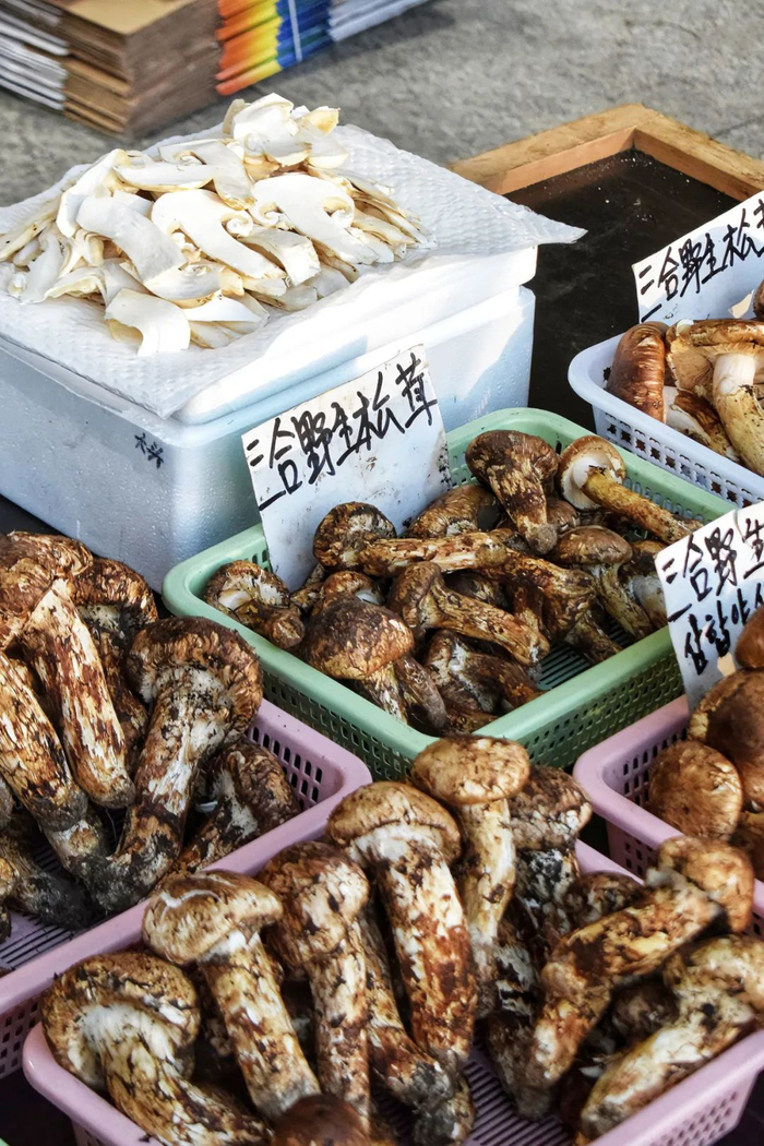 延边早市里的新鲜松茸。(摄影/大脚CL)